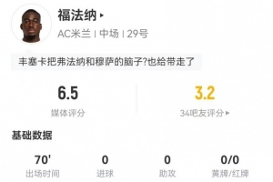 體育資訊3月3日訊 米蘭在本輪意甲焦點(diǎn)戰(zhàn)被拉齊奧2-1絕殺,福法納本場(chǎng)數(shù)據(jù)如下: