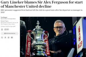 體育資訊03月03日訊 英格蘭名宿、評論員萊因克爾在評述時表示,曼聯(lián)如今衰落的原因可以追溯到2013年弗格森的離任。
