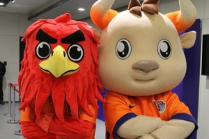 同青島·共榮耀,在3月1日海牛主場(chǎng)迎戰(zhàn)深圳新鵬城的比賽中,不少?lài)?guó)信男籃的球迷來(lái)到青春足球場(chǎng)為青島海牛加油助威,國(guó)信男籃的吉祥物“雄鷹”也與“犇犇”進(jìn)行了親密的互動(dòng)。
