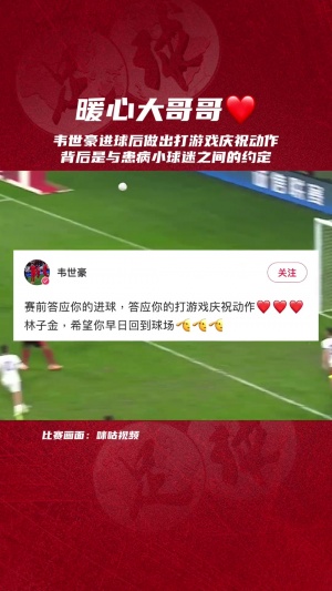 體育資訊03月03日訊 本輪中超聯(lián)賽,成都蓉城1-2天津津門虎。比賽第25分鐘,韋世豪破門后做出打游戲的慶祝動作,賽后被披露這原來是他與患病小球迷間的約定。