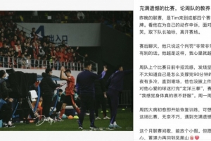 對(duì)于周定洋的染紅,他的經(jīng)紀(jì)人在社媒以“充滿遺憾的比賽,論周隊(duì)的教養(yǎng)”為題發(fā)文寫道: