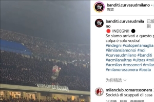 在輸球后,米蘭南看臺通過社交媒體發(fā)表了一段抗議視頻,配文寫道:“恥辱!如果我們走到了這個地步,那全都是你們的責(zé)任!”