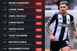 體育資訊3月3日訊 數(shù)據(jù)機構(gòu)squawka統(tǒng)計了本賽季五大聯(lián)賽球員一對一獲勝情況,吉馬良斯壓亞馬爾居首。
