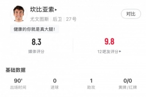 體育資訊3月4日訊 意甲第27輪,尤文2-0維羅納??脖葋喫鞅緢鰯?shù)據(jù):