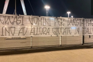 尤文球迷組織先是在球場(chǎng)集結(jié),隨后前往球隊(duì)賽前集訓(xùn)地表達(dá)不滿(mǎn)。球迷在球場(chǎng)外掛出兩條批評(píng)性橫幅,一條強(qiáng)調(diào)“你們所有人都只是過(guò)客,而我們是足球的歷史”,另一條則直接批評(píng)球員“為這件球衣尋找真男人”。