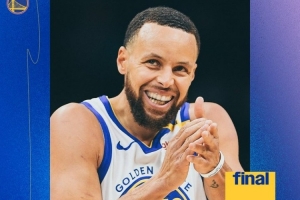 賽后勇士官方曬出本場贏球海報,封面人物給到當(dāng)家球星庫里。