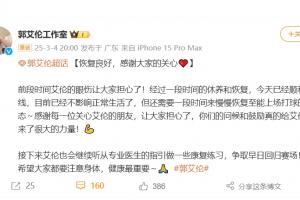 郭艾倫工作室寫道:“前段時(shí)間艾倫的眼傷讓大家擔(dān)心了!經(jīng)過一段時(shí)間的休養(yǎng)和恢復(fù),今天已經(jīng)順利拆線,目前已經(jīng)不影響正常生活了,但還需要一段時(shí)間來慢慢恢復(fù)至能上場(chǎng)打球的狀態(tài)~感謝每一位關(guān)心艾倫的朋友,讓大家擔(dān)心了,你們的問候和鼓勵(lì)真的給艾倫帶來了很大的力量!??