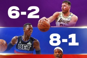 有東契奇的湖人6勝2負,有施羅德的活塞8勝1負