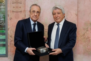 體育資訊3月5日訊 凌晨4點,歐冠將進行馬德里德比戰(zhàn)。在該場比賽賽前,按照常規(guī)兩隊主席進行了會面。