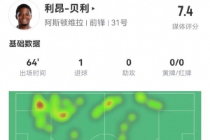體育資訊3月5日訊 維拉在本輪歐冠2-1領(lǐng)先布魯日,利昂-貝利本場數(shù)據(jù)如下:
