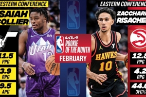 體育資訊3月5日訊?NBA官方今日宣布,爵士29號秀科利爾和老鷹狀元里薩謝當選2月份西部和東部的最佳新秀。