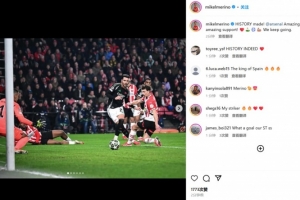 他也在賽后通過(guò)社媒曬出自己的進(jìn)球瞬間,并配文:“7造歷史!@阿森納,難以置信的球隊(duì),難以置信的支持!??????我們繼續(xù)努力!”