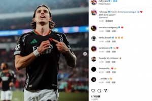 卡拉菲奧里也在賽后通過(guò)社媒曬出自己手指隊(duì)徽的慶祝照,并紀(jì)念道:“我的歐冠首球!伙計(jì)們干得漂亮!@阿森納”
