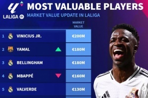 體育資訊12月30日訊 《轉(zhuǎn)會市場》近日更新了西甲球員身價,并列出了西甲球員最貴榜,皇薩包攬前十。