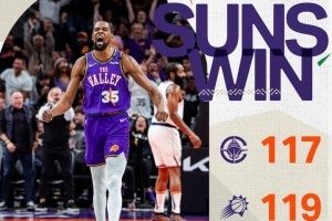 體育資訊3月5日訊?NBA常規(guī)賽,太陽(yáng)119-117險(xiǎn)勝快船。