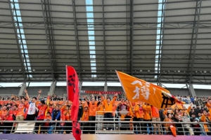 “江西贏天下”首先表達(dá)了江西球迷對(duì)蒸蒸日上、欣欣向榮的美好生活的追求;同時(shí)“贏”音同“迎”也含有江西球迷敞開(kāi)胸懷,歡迎天下賓朋之意,體現(xiàn)江西球迷的熱情好客。同時(shí)“江西贏天下”也寓意著江西足球不服輸、戰(zhàn)必勝的精神內(nèi)核,象征著江西足球?qū)倮?、?duì)美好的追求。