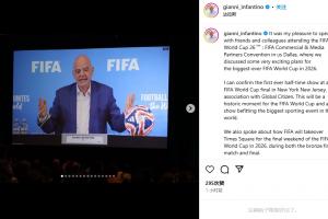因凡蒂諾在自己的社媒中寫道:我可以確認,在新澤西舉行的2026年世界杯決賽上,將首次推出中場休息演出,F(xiàn)IFA將與Global Citizen合作。這會是FIFA世界杯的一個歷史性時刻。