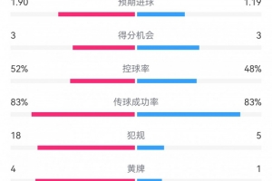 體育資訊3月6日訊 歐冠1/8決賽首回合,十人巴薩1-0客勝本菲卡。雙方全場重點數(shù)據(jù)對比如下↓(主隊本菲卡在前,客隊巴薩在后)