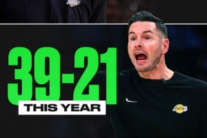 去年的湖人此時32勝28負,排名西部第9;今年的湖人目前39勝21負,高居西部第2。