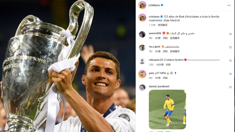 C羅:皇家馬德里123周年快樂!向所有馬德里主義者致以最誠摯的祝福!Hala Madrid!