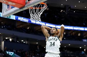 字母哥出戰(zhàn)24分50秒,20投13中、罰球6中6,砍下32分15籃板4助攻1搶斷,出現(xiàn)3次失誤,正負值為全場最高的+30。