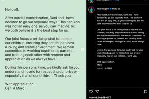 我們的共同重心是優(yōu)先為孩子們考慮,確保他們繼續(xù)擁有充滿關(guān)愛且穩(wěn)定的成長環(huán)境。我們將繼續(xù)作為父母攜手合作,并始終以尊重和珍視的態(tài)度相待,正如我們一直以來所做的那樣。