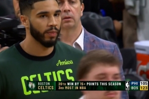 轉(zhuǎn)播方曬出護(hù)具,這是凱爾特人本賽季第20次單場凈勝15+,這一數(shù)據(jù)排名聯(lián)盟第3位。具體數(shù)據(jù)如下: