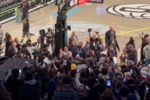本場(chǎng)比賽,庫(kù)里狀態(tài)爆棚,他全場(chǎng)砍下了面對(duì)籃網(wǎng)的新高40分,三分球更是箭箭穿心,客場(chǎng)球迷高呼MVP,最后庫(kù)里也直接對(duì)巴克萊中心的球迷道晚安。