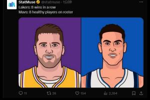 美媒調(diào)侃道:“湖人有8連勝,獨(dú)行俠有8名健康的球員?!?/p>
