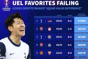 1.熱刺0-1阿爾克馬爾(24-25賽季),7.68億