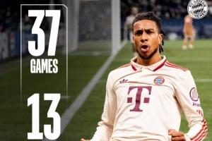 數(shù)據(jù)統(tǒng)計顯示,23歲的法國邊鋒在去年夏天5300萬歐元從水晶宮轉(zhuǎn)會拜仁,本賽季各項賽事為拜仁出戰(zhàn)37場,貢獻13球13助攻。