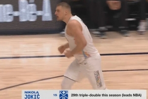 比賽進(jìn)行至第三節(jié)時(shí),約基奇已經(jīng)完成3雙。他出戰(zhàn)21分鐘,9投5中,三分5投2中,拿到13分10籃板13助攻。