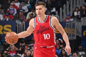 此役,博格丹出戰(zhàn)27分24秒,投籃9中4,三分4中0,得到8分12籃板3助攻1搶斷。
