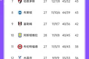 體育資訊03月08日訊 本輪英超先賽一場,曼城0-1不敵諾丁漢森林,最新積分榜如下。