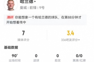 體育資訊3月8日訊 曼城在本輪英超0-1不敵諾丁漢森林,哈蘭德本場(chǎng)數(shù)據(jù)如下: