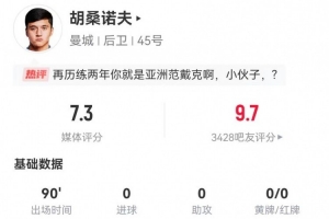 體育資訊3月8日訊 曼城在本輪英超0-1不敵諾丁漢森林,胡桑諾夫本場數(shù)據(jù)如下: