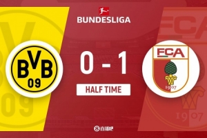 體育資訊3月8日訊 北京時間3月8日22:30,德甲第25輪,多特蒙德坐鎮(zhèn)伊杜納信號公園球場迎戰(zhàn)奧格斯堡。上半場,古維勒烏頭球吊射破門,多特半場0射正。上半場比賽結(jié)束,多特蒙德暫時在主場0-1落后奧格斯堡。