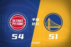體育資訊3月9日訊 NBA常規(guī)賽,勇士半場51-54落后活塞。