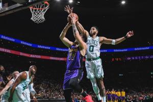 今日的波士頓北岸花園球場(chǎng)仿佛穿越回1985年——湖人與凱爾特人這對(duì)宿敵,時(shí)隔40年再次以分區(qū)前二的姿態(tài)相遇。首節(jié)雙方33-33戰(zhàn)平,湖人一度領(lǐng)先8分,綠軍則以1分優(yōu)勢(shì)短暫反超,攻防節(jié)奏宛如拳擊賽的試探回合。然而,第三節(jié)風(fēng)云突變,綠軍單節(jié)轟下29分,湖人僅得13分,分差瞬間拉開至20分。帕金斯在社媒銳評(píng):“湖人想念濃眉和克里斯蒂的速度與高度!” 的確,戴維斯的缺陣讓湖人內(nèi)線形同虛設(shè),而綠軍的塔圖姆則化身“拆墻錘”,單節(jié)10分徹底擊穿防線。