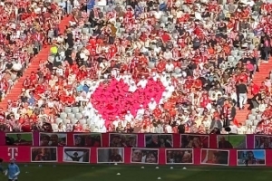 體育資訊3月9日訊 本輪德甲,拜仁在主場(chǎng)2-3不敵波鴻?!秷D片報(bào)》報(bào)道,拜仁安聯(lián)球場(chǎng)看臺(tái)上標(biāo)志性的德國(guó)電信“T”字形圖案在本場(chǎng)比賽被心形圖案取代。