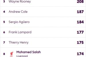 英超歷史射手榜↓