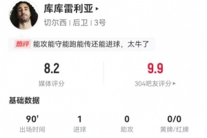 體育資訊3月10日訊 切爾西在本輪英超1-0力克萊斯特城,庫庫雷利亞本場數(shù)據(jù)如下: