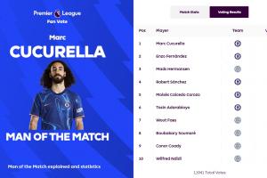 體育資訊3月10日訊 英超第28輪,切爾西1-0萊斯特城。庫庫雷利亞首發(fā)出戰(zhàn),賽后以73.6%得票率當(dāng)選全場最佳。