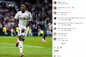 維尼修斯也在賽后曬出自己的慶祝照,并配文:“讓我們繼續(xù)前進(jìn)贏得更多!”