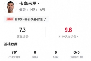 體育資訊3月10日訊 曼聯(lián)在本輪英超1-1戰(zhàn)平阿森納,卡塞米羅本場(chǎng)數(shù)據(jù)如下: