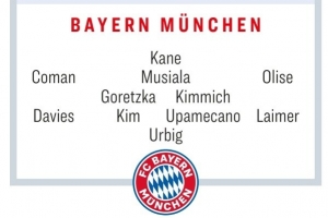 烏爾比希/戴維斯、金玟哉、于帕梅卡諾、萊默爾/格雷茨卡、基米希/科曼、穆西亞拉、奧利塞/凱恩