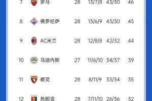 本輪意甲即將結(jié)束,國米居首,那不勒斯次席,亞特蘭大第3,尤文主場慘敗且僅領(lǐng)先少賽一輪的拉齊奧2分,位居第4。羅馬第7,米蘭第9。具體積分榜情況如下: