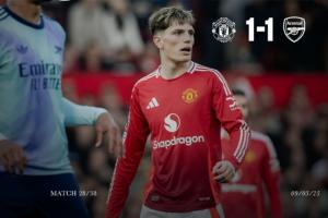 體育資訊03月10日訊 英超第28輪,曼聯(lián)1-1打平阿森納。