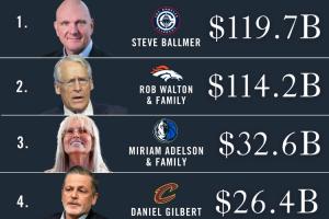 體育資訊03月10日訊 福布斯公布了美國(guó)體育運(yùn)動(dòng)隊(duì)老板的凈身家排名,快船老板鮑爾默領(lǐng)跑。
