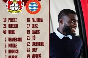 體育資訊3月11日訊 北京時(shí)間3月12日周三凌晨4點(diǎn),拜仁慕尼黑將在歐冠1/8決賽次回合客場(chǎng)挑戰(zhàn)勒沃庫森,首回合,拜仁在主場(chǎng)3-0獲勝。今天,拜仁公布了次回合大名單,名單如下: